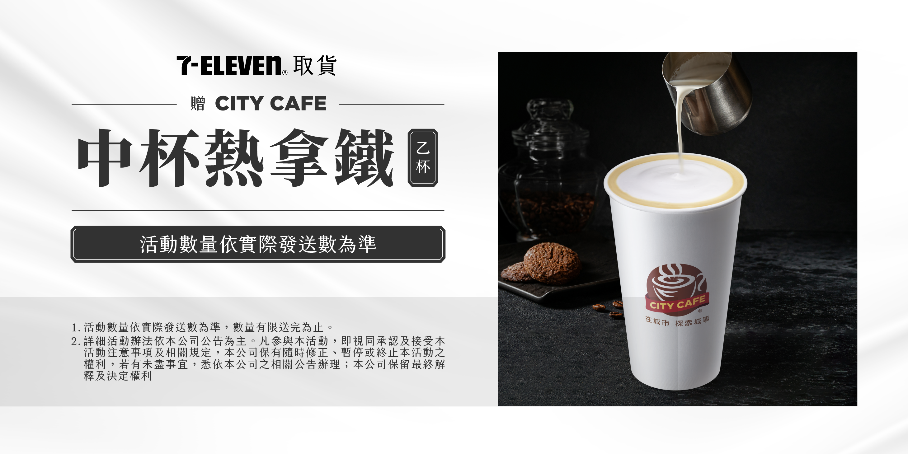 2.憑紙本咖啡兌換券至櫃檯,即可換得 CITY CAFE 中杯熱拿鐵 乙杯。